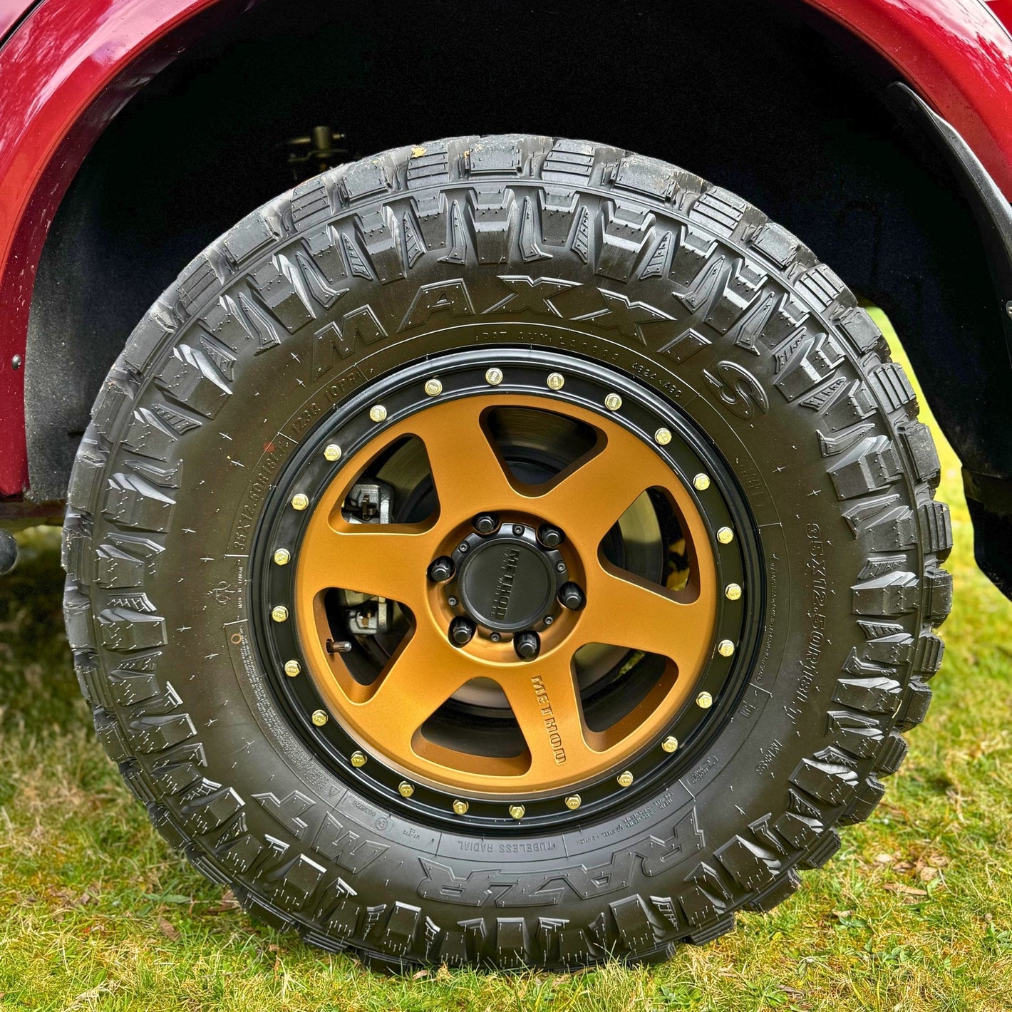 Rolling on Method Race Wheels 310 Con 6 in Bronze/Gold, paired with 35” Maxxis Razr M/Ts, the Patrol commands attention before it even starts the engine. The bronze finish of the Method wheels contrasts perfectly with the Desert Red paintwork, giving the Y62 an aggressive yet stylish stance that is unmistakably tough. These wheels are known for their strength-to-weight ratio and proven reliability under punishing conditions, making them a smart choice for serious off-roaders.